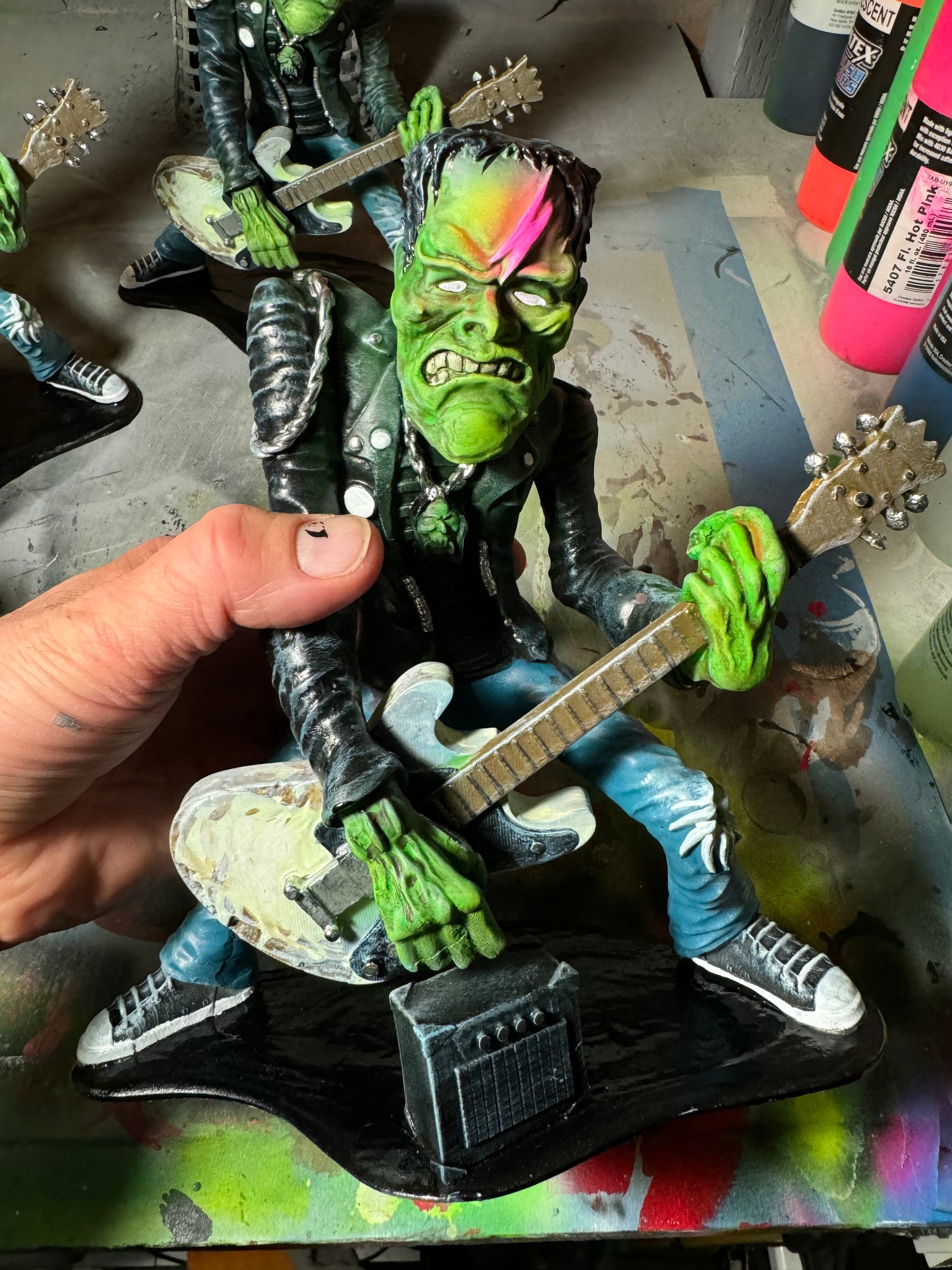 DRUMMER MONSTER 3D printed hand painted prototypes. He's 7.5 inches high and comes with a separate drum kit! I only have 2 available!