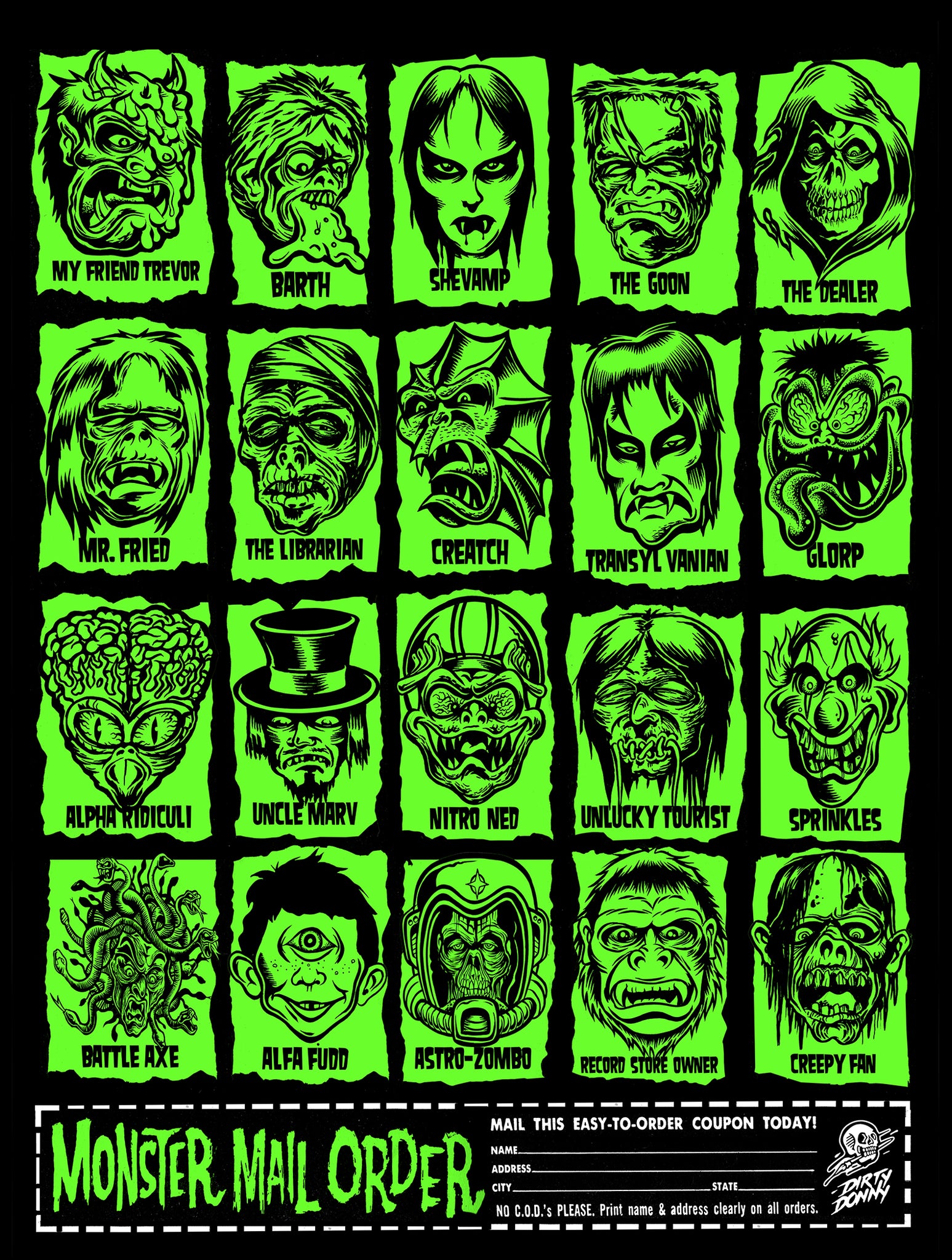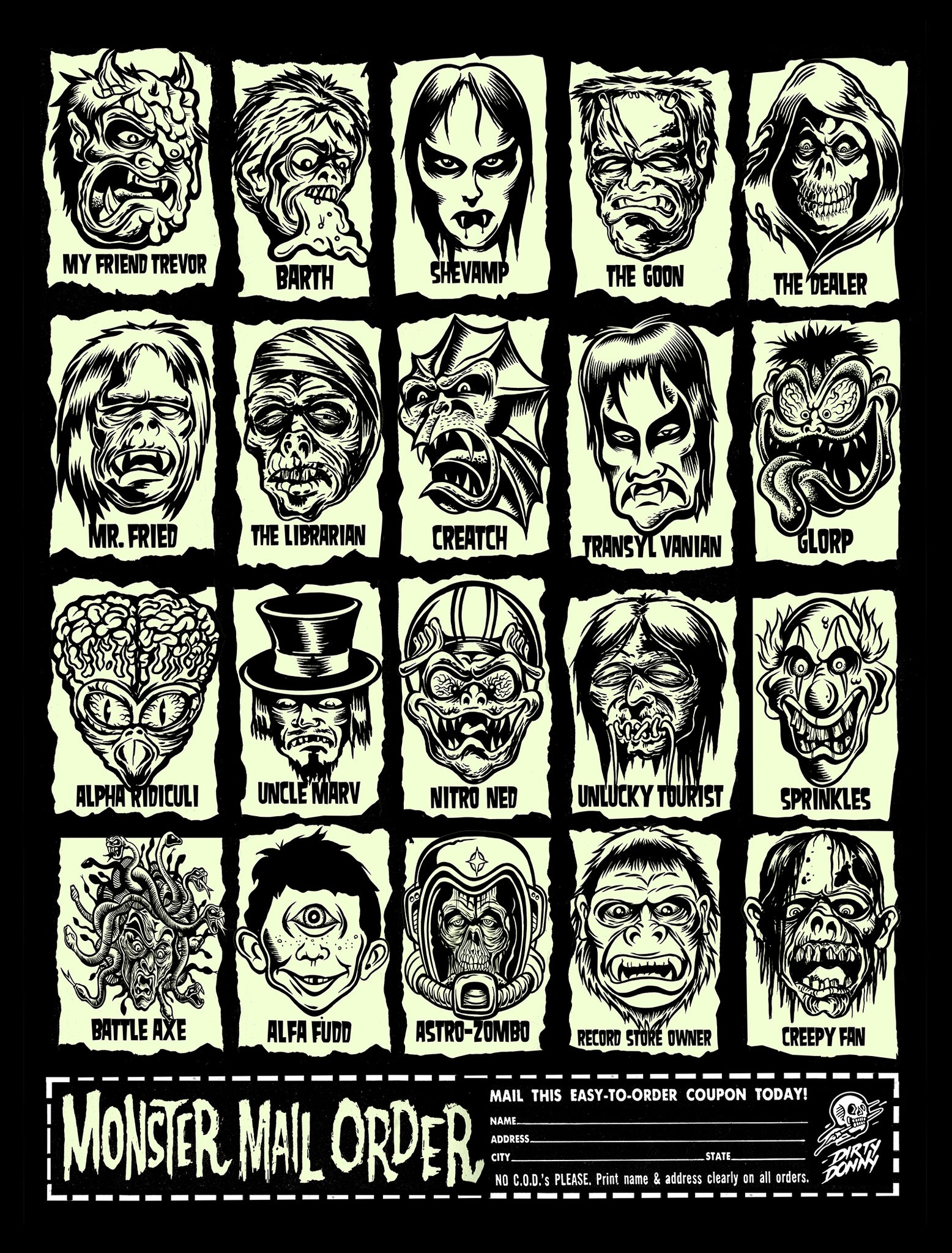 So stoked to finally cram all these Ghouls into one poster, influenced but the adds in the back of vintage Monster magazines, it was way fun to make my own and now bring them to you!